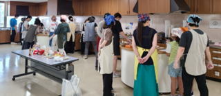 | 令和5年度 マダン交流会活動報告 開催日:令和5年7月23日(日) 受講者数:21名 場所:コムズ調理室 時間:13時30分~15時30分 今回のマダンは韓国のおやつ「ソトック」「ホットク」を作りました。 韓国の屋台や地下鉄の駅でもよく見かけます。簡単に作れるので親子参加もあり、 子供さんがホットクの生地を丸めている様子が微笑ましかったです。 韓国人留学生も参加し、楽しく会話しながら作って、和やかな雰囲気でした。(Y.I) |